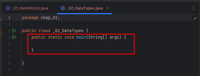 - 기본 출력문 : sout 입력 시 자동으로 작성됨