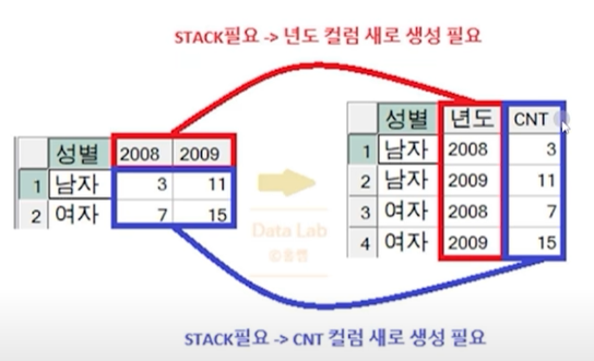 - STACK컬럼 : 새로 만들 컬럼이름 정의