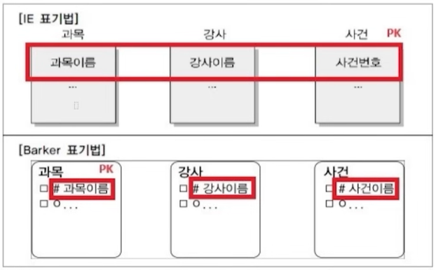 | 중심 엔터티 | - 기본엔터티로부터 발생(파생), 업무의 중심적 역할 - ex) 계약, 사고, 청구, 매출, 주문 등 |